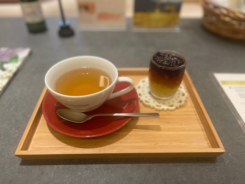 表参道店では、カフェが併設のため、施術後にカフェで提供されているメニューの一部を頂けました!爽やかな後味で、ロクシタン気分を満喫できるものでしたー‼️